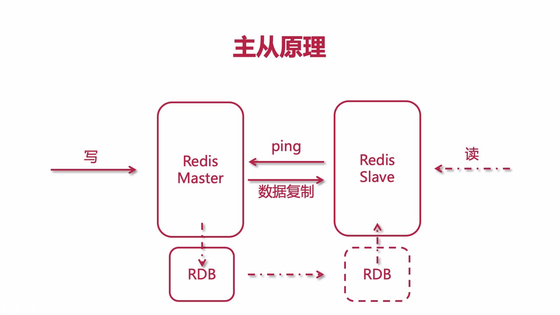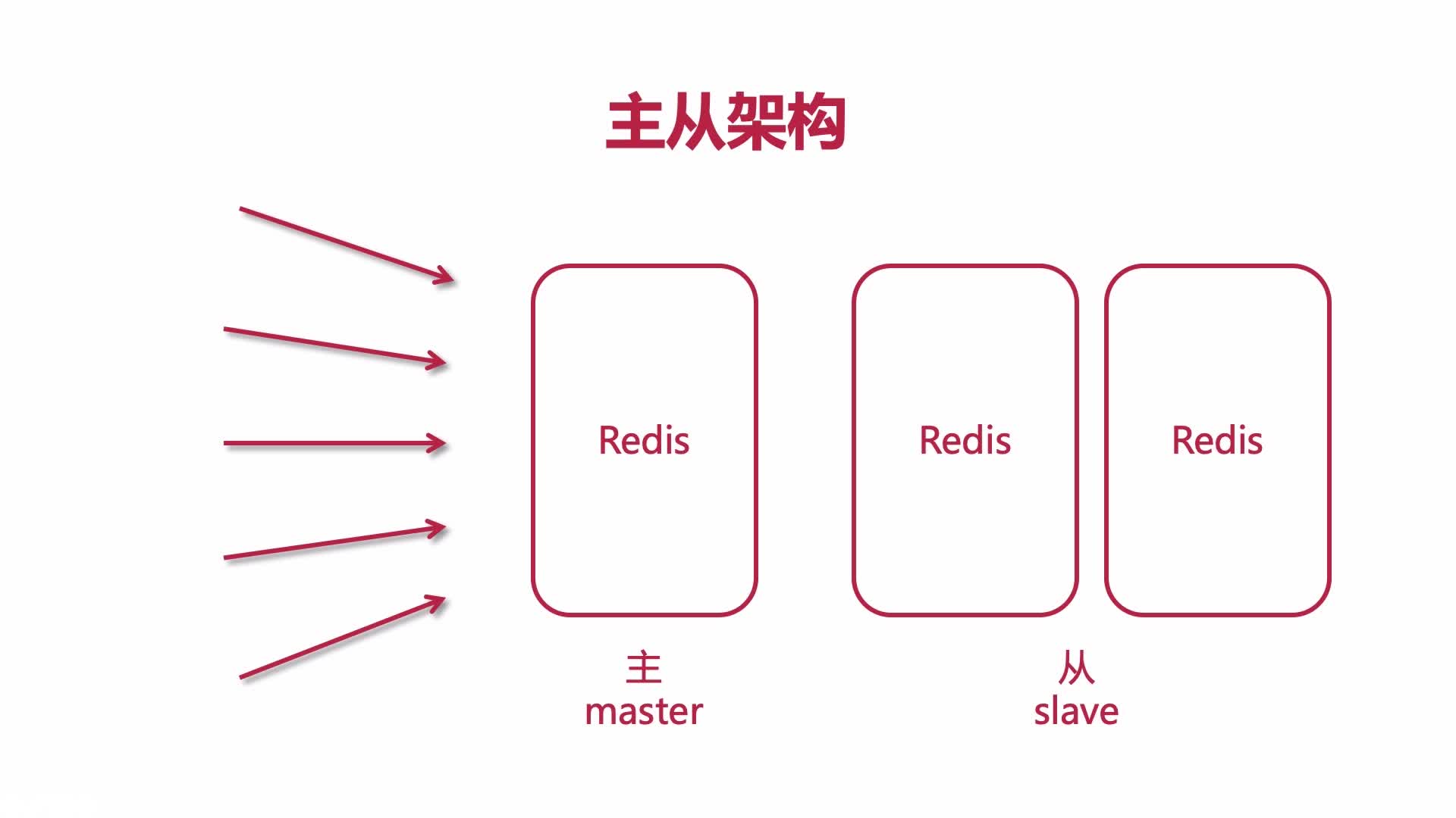 Redis 是缓存,根据读写二八原则,主节点负责处理写操作,分发读请求到从节点,从节点负责处理读操作。