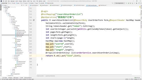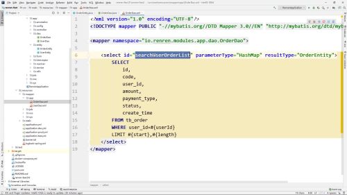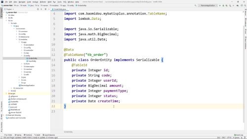 4、新建对应的order实体,顺序:entity、mapper、service、controller;单表的查询可以使用面向对象的方法,多表查询的可以通过自定义mapper语句实现,避免使用select *: