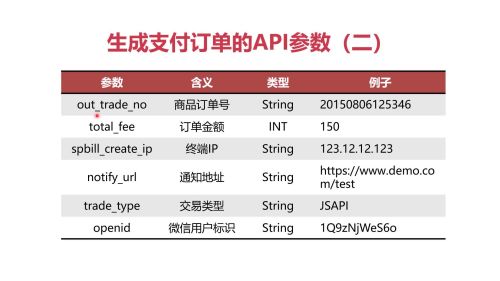 2、微信支付接口参数通用说明:(1)关于课程中关于最小的支付金额是1元的问题,现在微信支付最低金额可以是1分钱了,以前必须是1元钱;(2)小程序的交易类型(trade_type)是JSAPI;(3)境内商户只能做人民币交易;