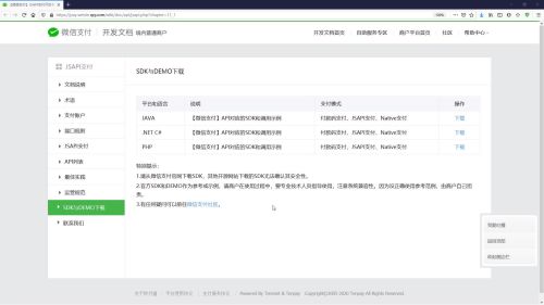 3、官方支付SDK:在微信支付官方的开发文档中,有提供SDK与DEMO,有JAVA、.NET、PHP等语言版本,使用官方封装好的支付SDK,可以简化微信开发的开发;