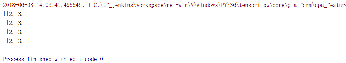 大家可以看到,在tile_b函数中有一个tf.py_func函数,其中的func参数便是_tile_b函数。在_tile_b函数中,根据a的值对b进行了扩张。我们来运行一下main函数,输出结果: