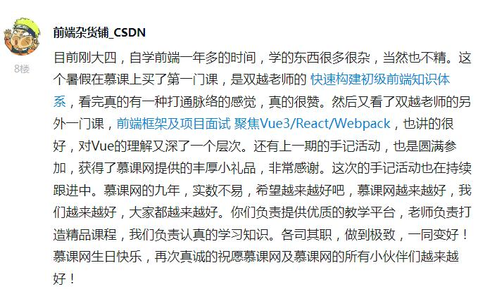 很幸运这9年有大家的支持和陪伴,我们会继续砥砺前行,打造出更多的精品课程,帮助大家积累知识,完善技能,在岗位上大放异彩,完成人生的跃迁!