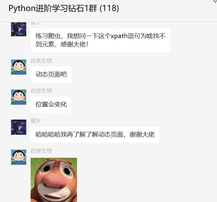 最后感谢粉丝【萤火】提问,感谢【此类生物】、【瑜亮老师】、【error】给出的思路和代码解析,感谢【冫马讠成】、【猫药师Kelly】、【dcpeng】等人参与学习交流。
