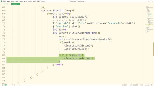 1、在创建订单请求的成功回调方法里面,定义定时器,每隔5秒中进行轮询,最多轮询10此,定时轮询调用后端查看支付结果的接口。需要注意的是,在轮询的过程中,如果发现订单已经支付成功,这个时间就需要取消定时器,或者10次轮询都没有支付成功的结果反馈,这个时候也要主动取消定时器。其主要实现核心代码如下: