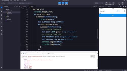 (3)在IDE的模拟器上面,可以获得沙箱用户的基本信息,但是在沙箱APP上面运行小程序,无法获得用户基本信息。