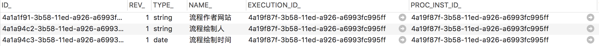 接下来,我们可以通过如下方式来查询 ACT_RU_VARIABLE 表中的数据: