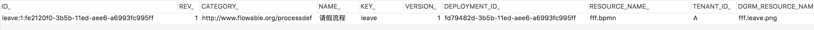 当这个流程图部署成功之后,我们在流程定义表 ACT_RE_PROCDEF 中可以看到刚刚设置的租户 ID: