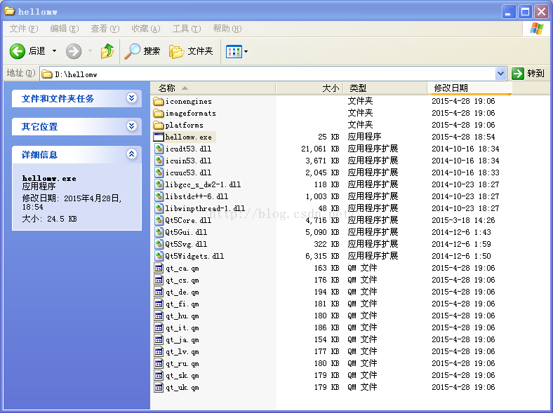把 D:\hellomw 文件夹 打包就可以发布了,不用自己一个个找 dll 文件了。D:\hellomw 文件夹里的qm文件是多国语言翻译文件,不需要可以删了,其他的都保留。