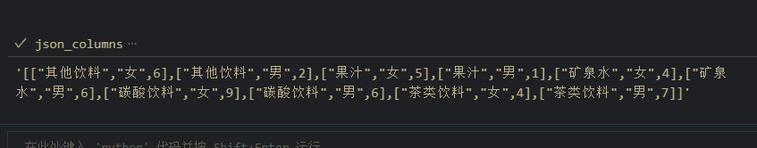 json_columns = df1.to_json(orient = "values",force_ascii=False)