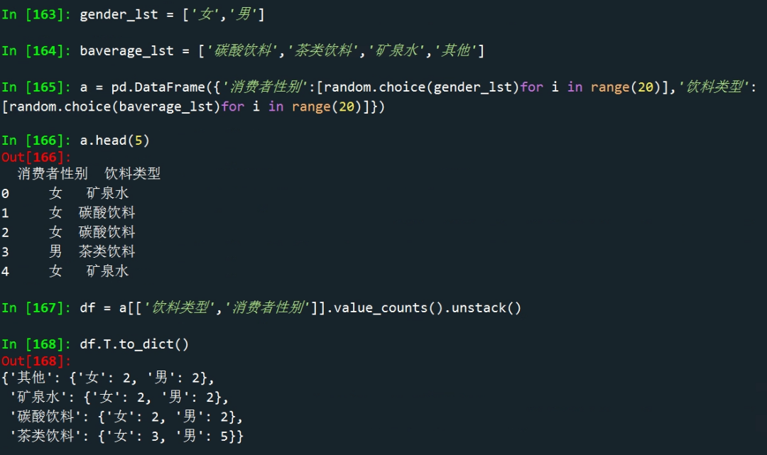 df = pd.read_excel('【例2-1】饮料类型的频数分布表.xlsx')