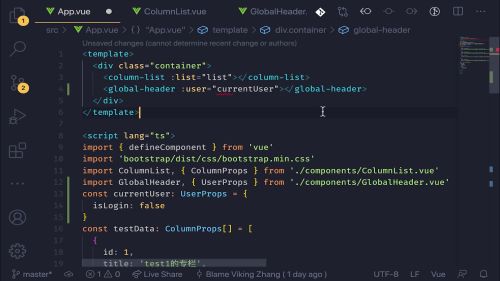 1、全局头部代码的实现,顺带温习前面学习的 vue3 组件定义和 bootstrap CSS 样式框架的使用: