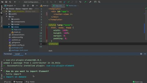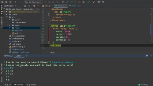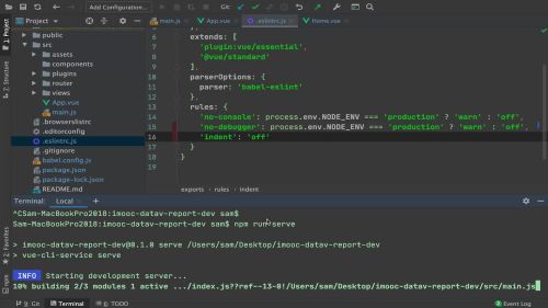 vue create imooc-datev-report // 创建项目选择manually手动安装 安装下babel router css pre-processours linter / fotmatter