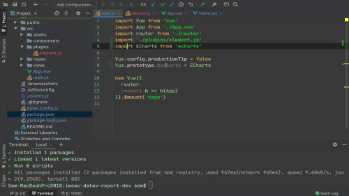 初始化项目,选择vue2,babel 、router 删除自动沟通的多余的代码,并添加element-ui echarts,然后初始化topview项目,建立四个卡片,设置它的样式,学习到了怎么设置element的初始化,按需加载,尽量的减少包的体积等