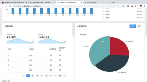 学习了环形的饼状图的实现,先实现饼状图,再radius设置成环形,再分别给每一个元素设置不同的颜色,还可以修改文字的线的距离,还有单个的数据的描述展示,还学习到了如何引入百度地图的实现销售大盘,根据数据展示不同的大小设置,tooltip来设置进入显示提示的功能,还有合并两个数据等