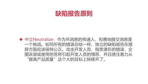 中立Neutralize:和善的提供消息,测试的工作目的应该在于“提高产品质量”