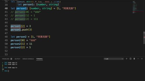 (2)元祖类型还有个bug:TypeScript 中的元组存在 BUG,如 person1.push(3) 可以通过,但是却和元组定义时的限制不符;