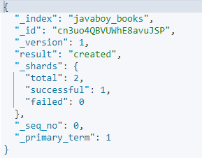 添加成功之后,返回的 IndexResponse 对象其实就是对下面这个 JSON 的封装: