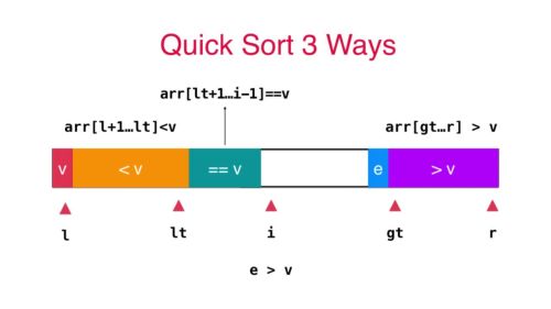 * 然后递归对<v 和 >v 部分进行三路快速排序