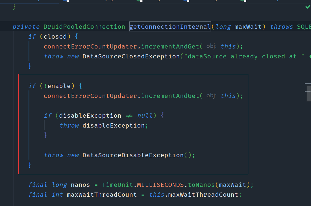 DruidDataSource druidDataSource = (DruidDataSource)originalDetermineTargetDataSource;