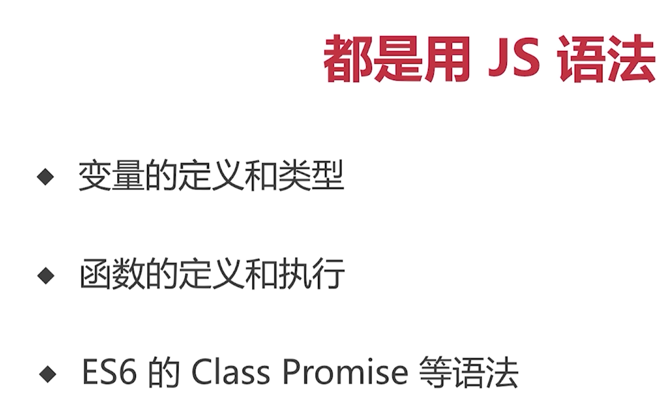 比如说我们现在只有js语法,我们只可以定一个变量,定一个函数,定一个class,我们只可以写一个promise。我们能干啥?