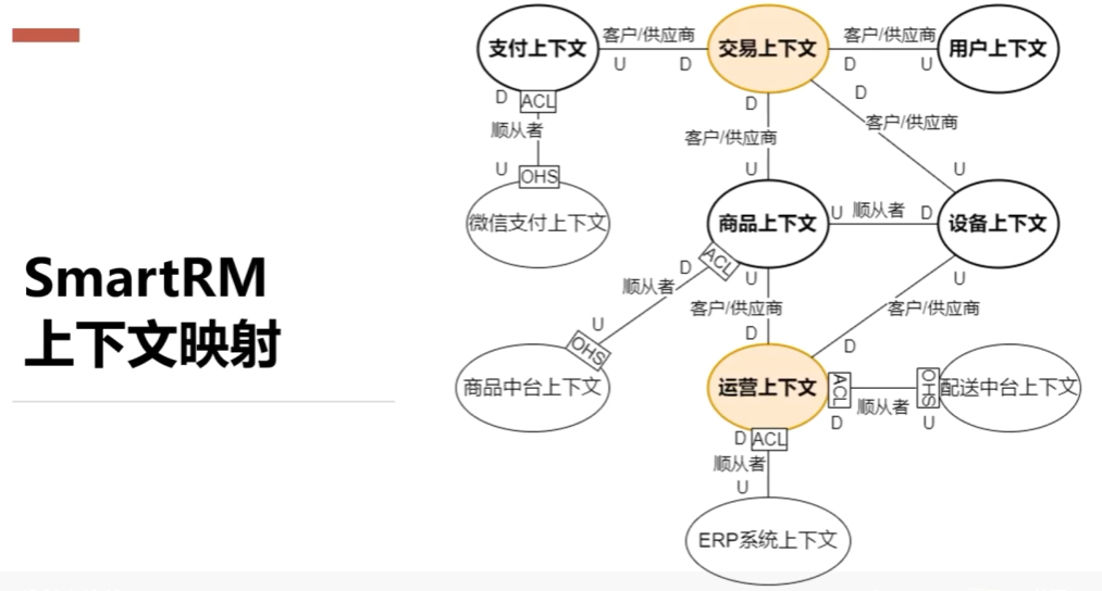 上下文映射作用:就是为了团队之间协作**(根据上下文映射关系,有相同的对象,谁来定义这个对象。),和重叠模型(不同模块相同对象)的映射关系**,这样