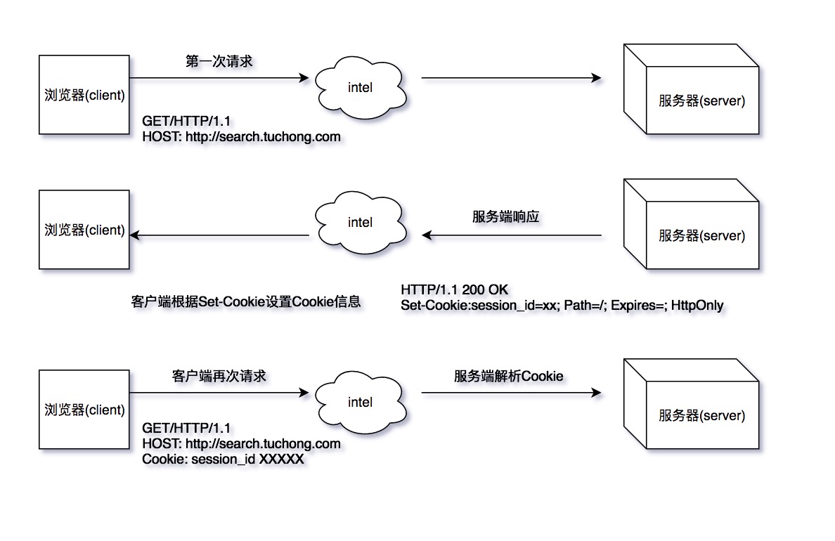 cookie: 为了解决HTTP的无状态,引入了Cookie技术,Cookie技术通过在请求和响应报文中写入cookie信息来控制客户端的状态。