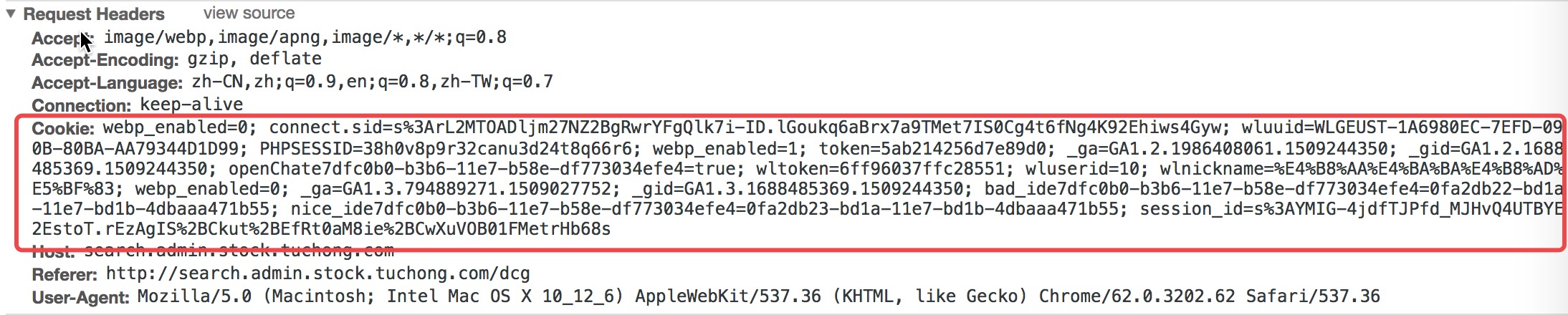 Cookie: 请求首部字段,服务端接收到的cookie信息