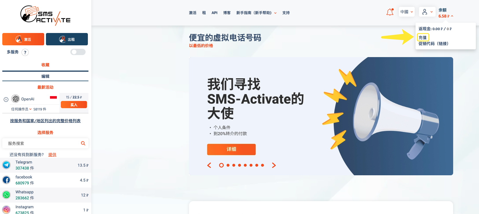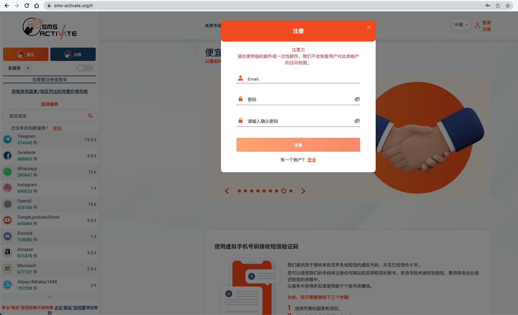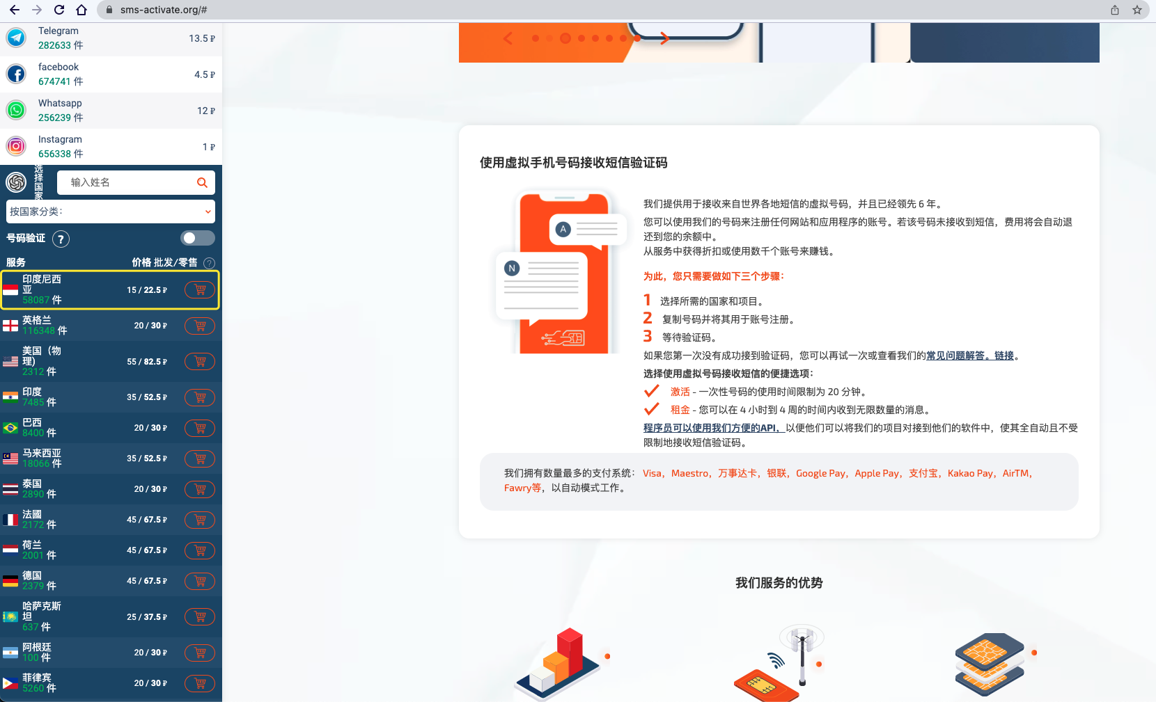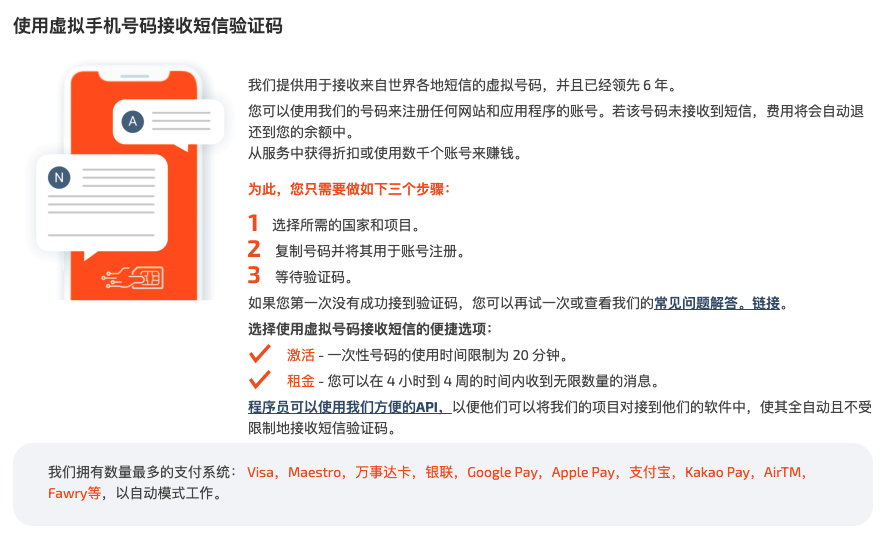 短信接码平台能够提供世界各地的虚拟号码,可以使用虚拟号码来注册任何网站和应用的账号,网站地址:https://sms-activate.org/