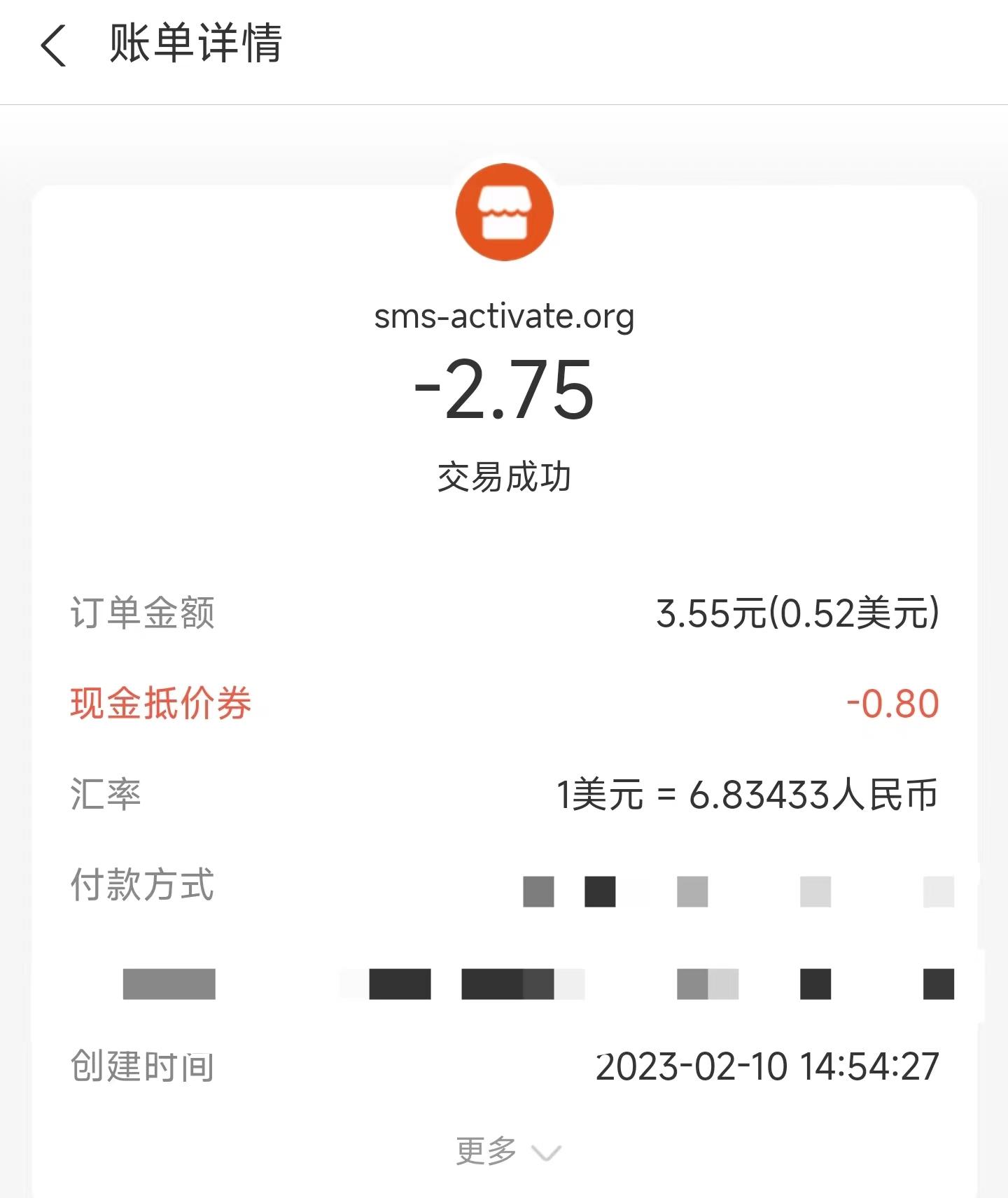由于账号中没有足够的余额,所以你还需要充值小部分金额,可以使用支付宝充值。1 美元约等于 78 卢布,购买一次接码服务绰绰有余,在几个月前还可以充值 0.5 美元,但现在最低要充值 2 美元,剩下的余额要么吃灰,要么只能找小伙伴用掉!😠