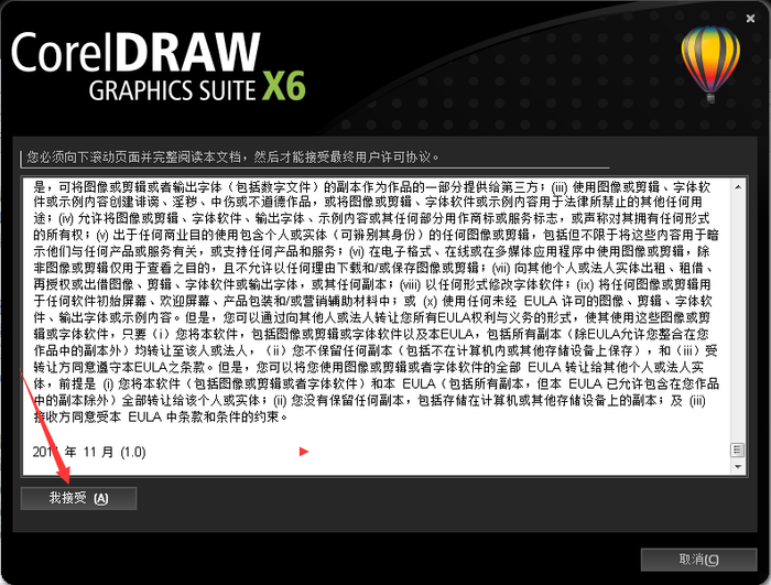 3. 阅读协议,将协议滚动至最下方,并点击“我接受”。