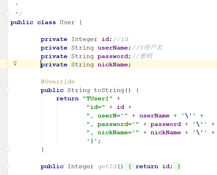 - 创建实体类(信息要与数据库的信息相同,但不要求名字相同)
