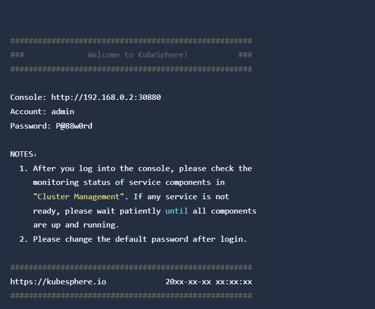 ./kk create cluster --with-kubernetes v1.22.12 --with-kubesphere v3.4.1