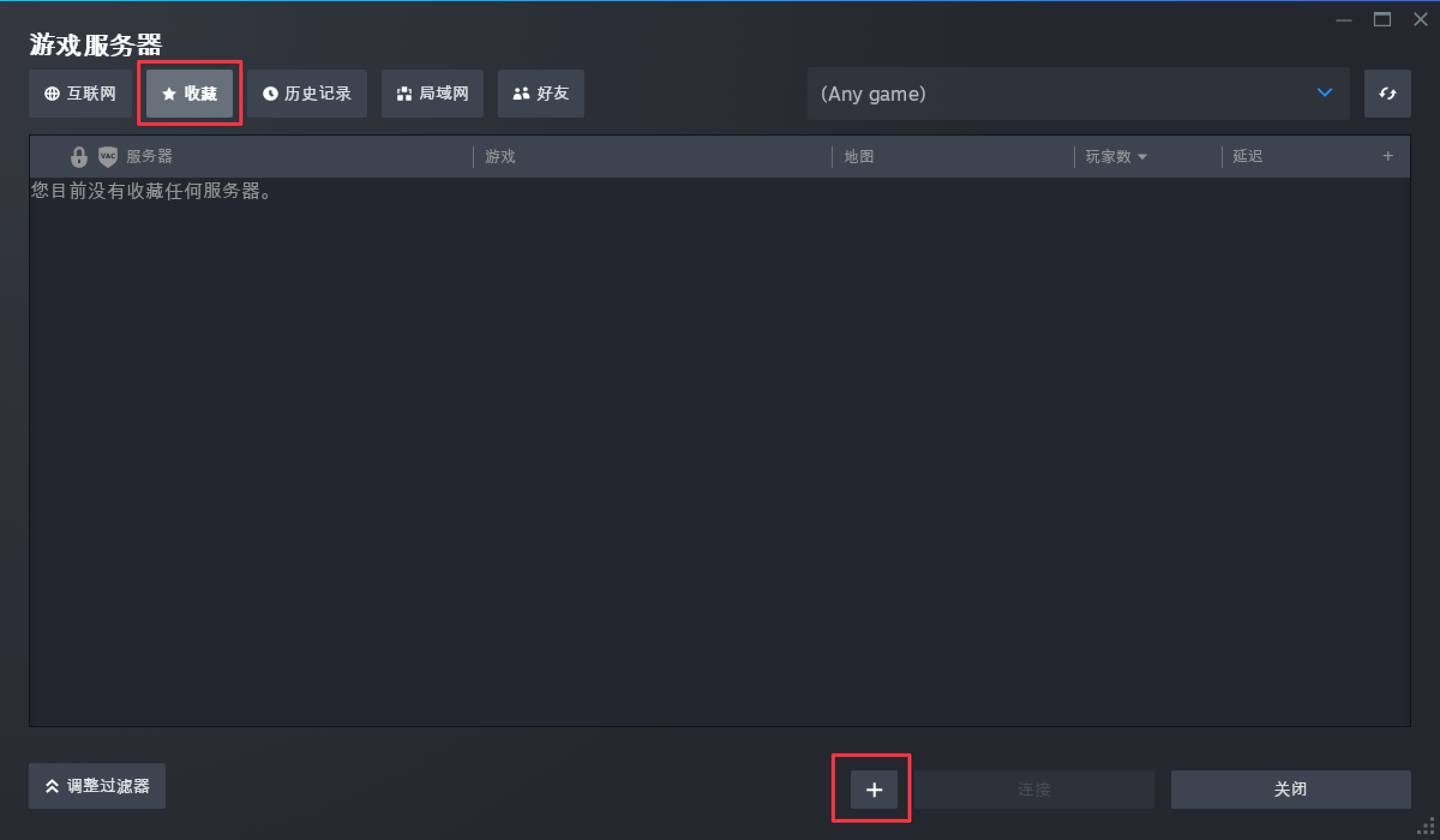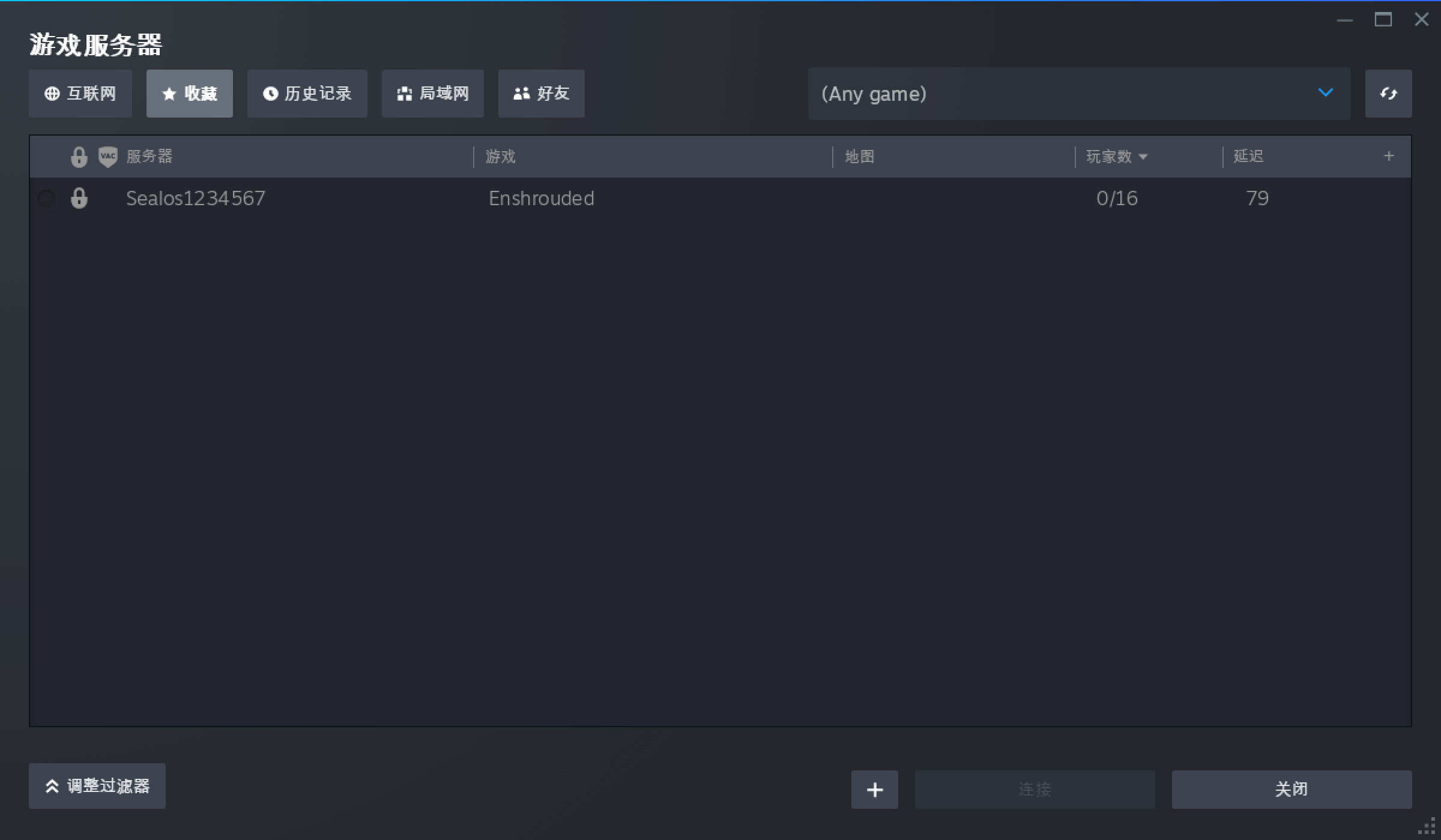 添加完成后,即可以在「游戏服务器」的「收藏」中看到对应的服务器。