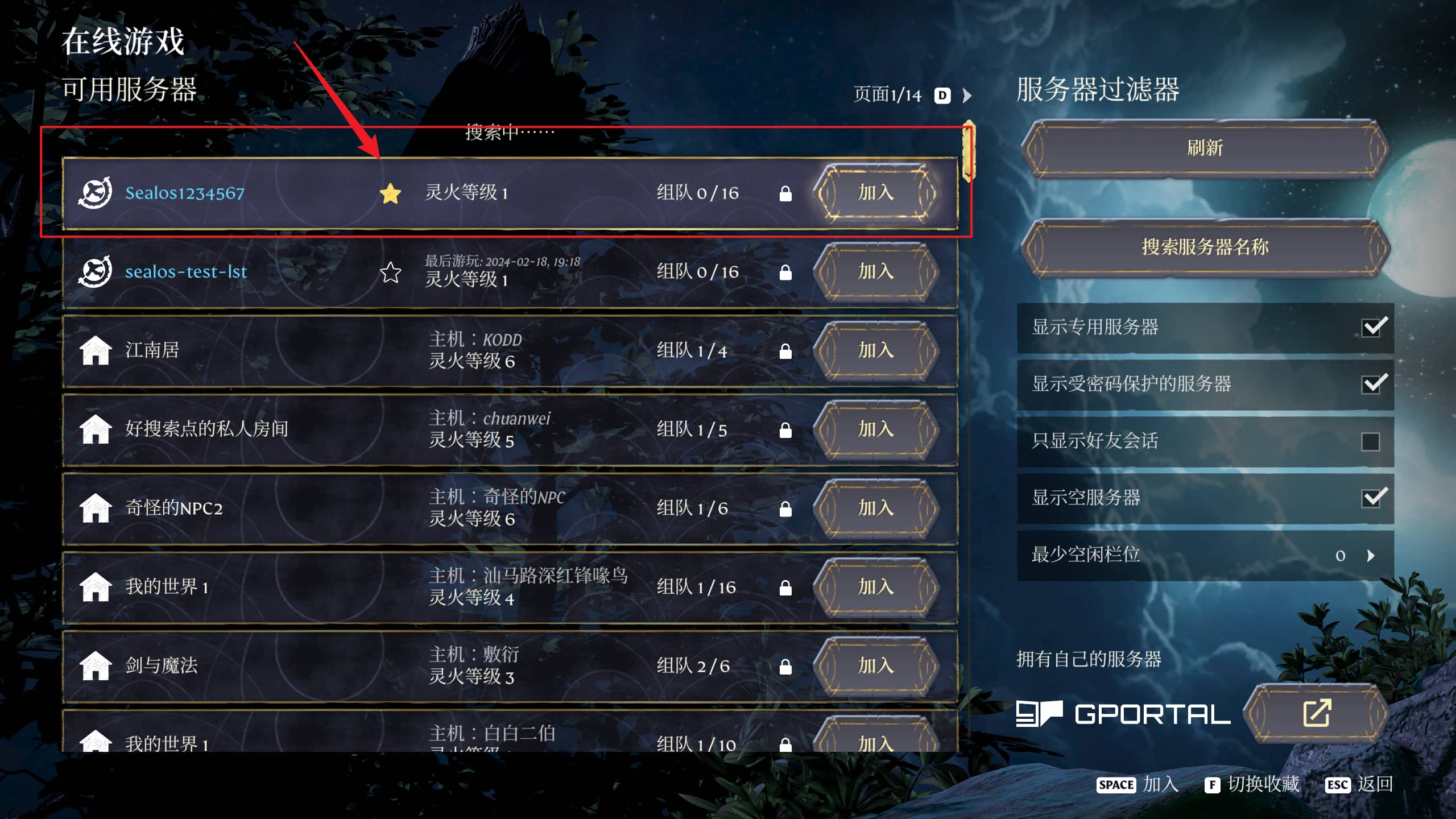 您在 Steam 中收藏的游戏服务器将出现在「可用服务器」的顶端,直接点击「加入」。