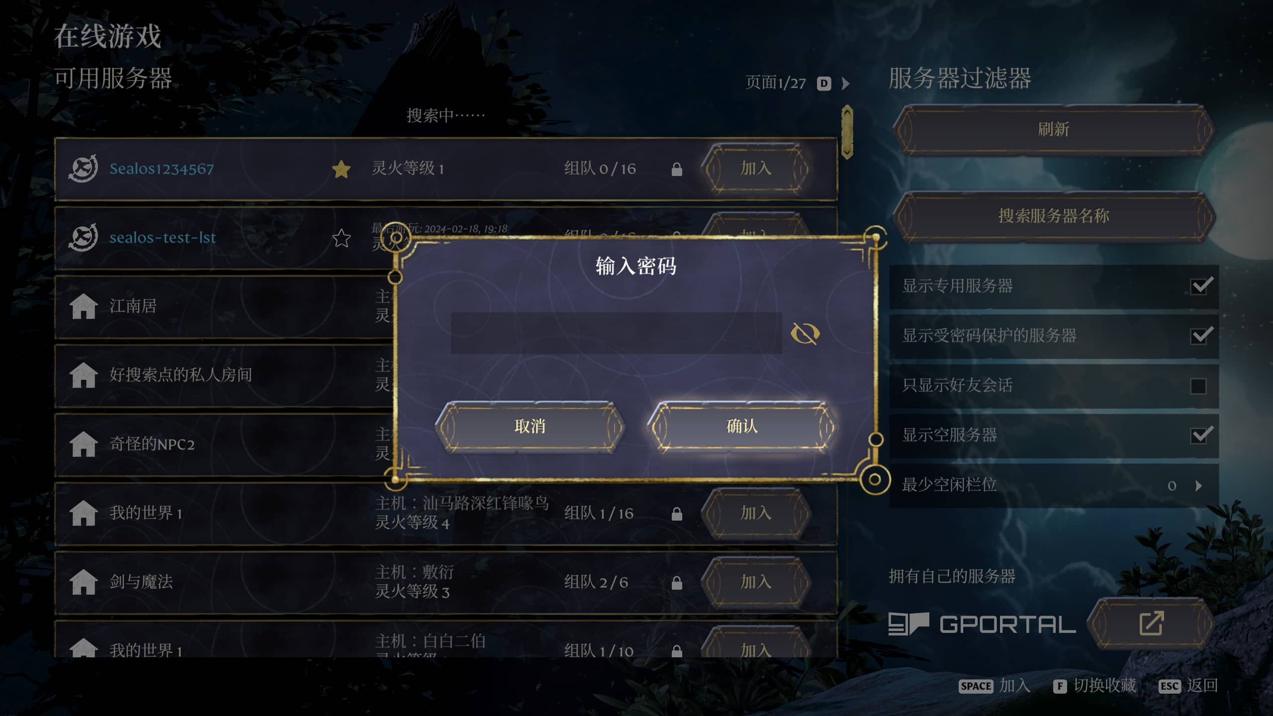 输入密码,点击「确认」按钮,即可加入游戏。