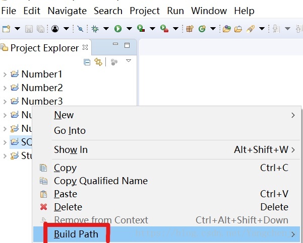 2.接下来让我们引进jdbc的jar包,右击项目依次选择:Build Path——》Add Libraries…,然后进入下一步
