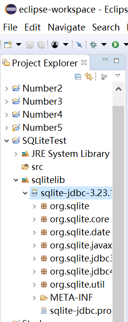 1.打开Eclipse,创建一个java项目,命名为SQLiteTest,创建完成后如图所示: