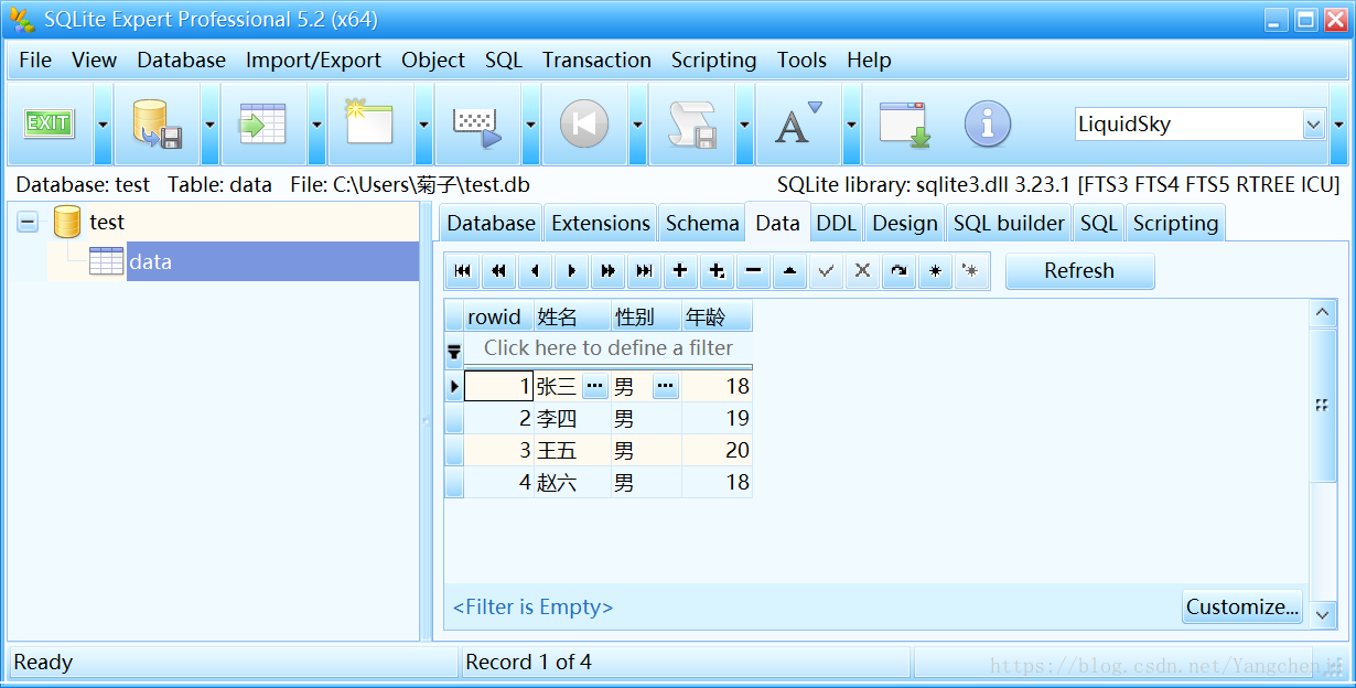 第一步:打开SQLite的图形化管理工具软,点击File–>New Database 或者Open Database,选中数据库,打开;
