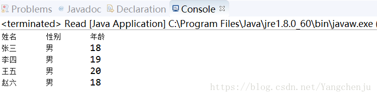 System.out.println("姓名"+"\t"+"性别"+"\t"+"年龄"); while (rs.next()) {