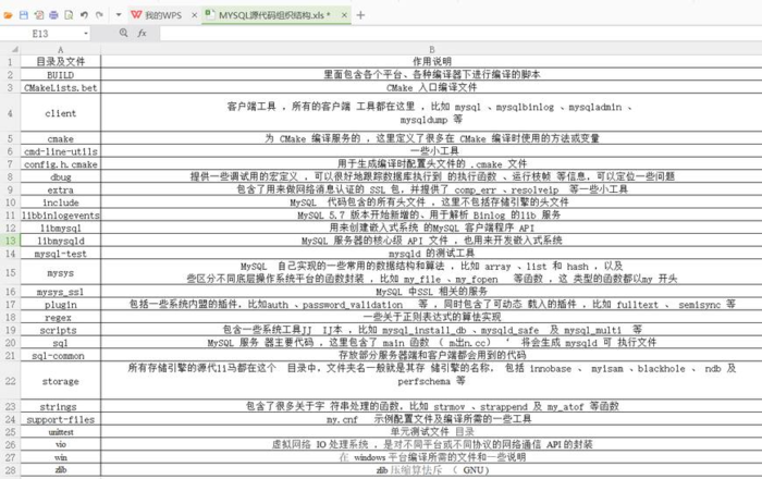 下载之后的文件一般是 mysql-5.7.16.tar.gz(以5.7.16为例)的打包文件,解压之后,可以看到最原始的代码结构。
