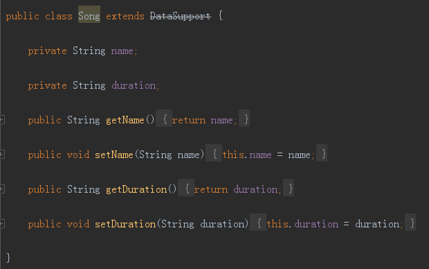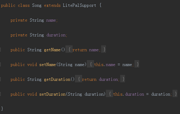 首先要定义一个实体类,这里我们就以Book类为例吧。比如Book类中有id、name、page这三个字段,并且继承自LitePalSupport类,如下所示: