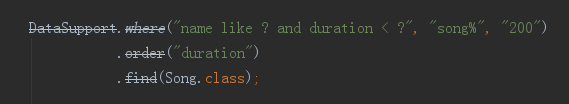接下来第二步需要升级的是静态CRUD方法。原来所有的静态CRUD方法都是封装在DataSupport类当中的,比如刚才我们演示过的查询数据库的中数据可以这么写: