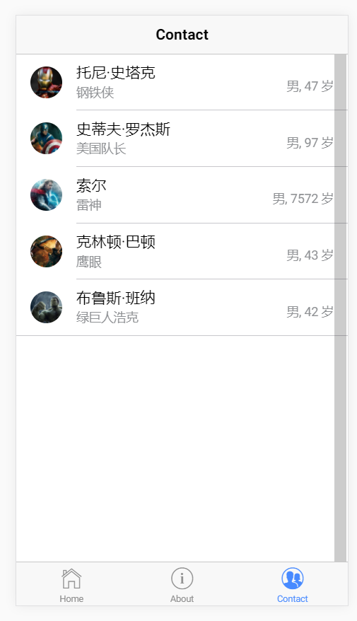 利用 ion-avatar 标签和 item-start 指令渲染一个有头像的列表:
