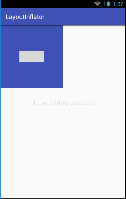 }小伙伴们注意到,这里我都没写将inflate出来的View添加到ll中的代码,但是linearlayout布局文件就已经添加进来了,这就是因为我第三个参数设置为了true,表示将第一个参数所指定的布局添加到第二个参数的View中。最终显示效果如下: