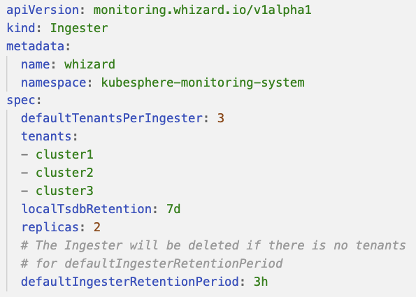 当租户删除时,需要考虑 Ingester 的资源回收,我们配置了 DefaultIngesterRetentionPeriod。图中的配置为 3 个小时,因为通常 Thanos 每两个小时进行一次数据落盘并推送到对象存储,配置为 3 小时,就能保证当前租户的数据能够被完整的落盘以及上传,达到资源的安全回收。