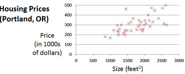 举个实际的例子: 我们想要根据房子的大小,预测房子的价格,给定如下数据集:
