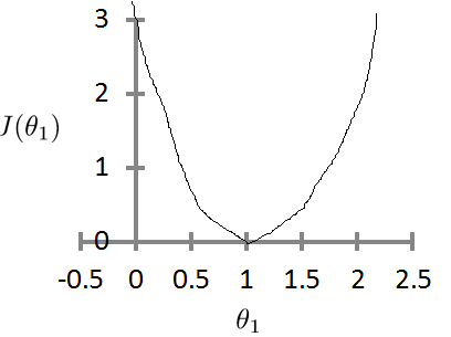 如果theta0 一直为 0, 则theta1与J的函数为: