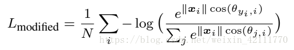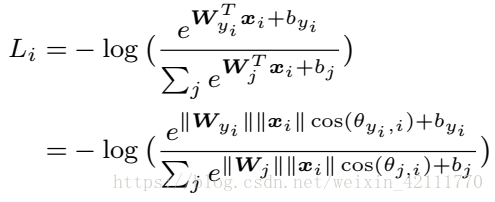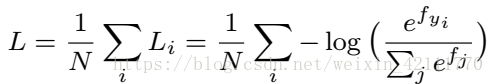 其中N表示训练样本的次数,卷及网络中,f通常是全连接层W的输出,所以,将f函数带入,可以将公式变换为如下:
