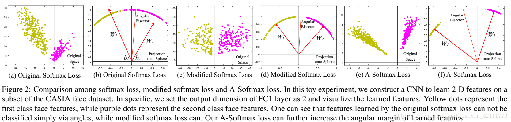 总的来说,论文中的A-softmax loss并不是新的loss,只是在原始的softmax loss的基础上做了改进,加入整数m,产生了角度距离,结果表明这个角度距离可以使得特征具有可判别性,而且m越大,可判别性就越大。