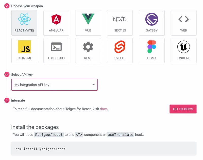 Tolgee 不只是一个提供集成的软件本地化平台,这些集成仅将本地数据与后端同步。相反,Tolgee 是通过 SDKs 真正地集成到你的应用中。